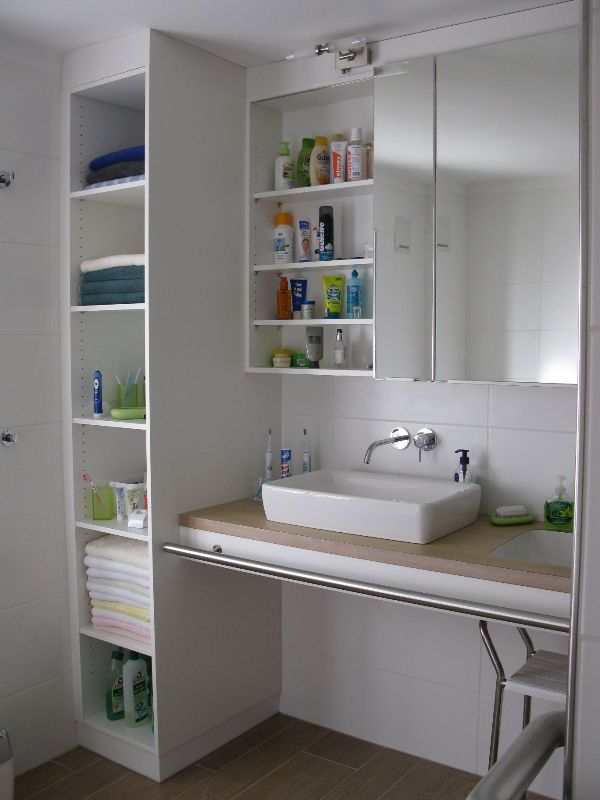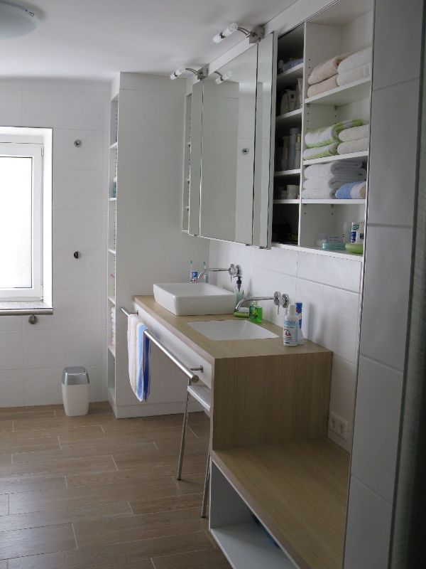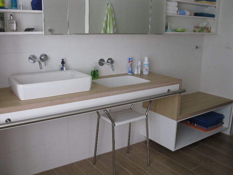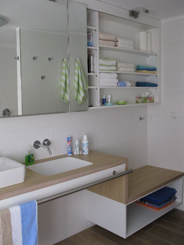 Das Badezimmer von heute ist weit mehr als ein Waschraum. Als Rückzugsort zu Beginn und am Ende des Tages steht es ganz im Zeichen des Wohlbefindens. Den Mittelpunkt bildet meist ein Waschtisch, kombiniert mit einem eleganten Spiegelschrank. Wir konzipieren die beiden Möbelstücke so, dass sie optimal mit ihrer Umgebung harmonieren. Dazu planen und realisieren wir für Sie Handtuchschränke, Wäscheablagen, Waschmaschinenverbauten, Stühle und alle anderen Badmöbel Ihrer Wahl.