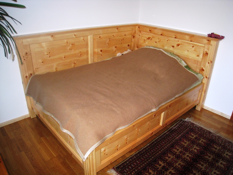 Im Schafzimmer suchen wir Ruhe und Erholung. Deshalb sollten die einzelnen Möbelstücke eine beruhigende Wirkung entfalten. Im Zentrum steht natürlich das Bett, das wir nach Ihren individuellen Vorstellungen und Maßgaben gestalten. Immer häufiger werden Zirbenbetten angefragt, da sich der aromatische Duft dieses Holzes positiv auf die Herzfrequenz auswirkt. Zudem wird Zirbenbetten eine antibakterielle und mottenunterbindende Wirkung nachgesagt. Natürlich tischlern wir aber auch Betten und Schlafzimmermöbel aus anderen hochwertigen Hölzern.